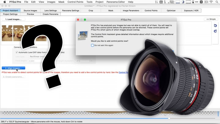 Problems with you manual fisheye lens (like the Samyang or Peleng 8mm) getting started in your stitcher?